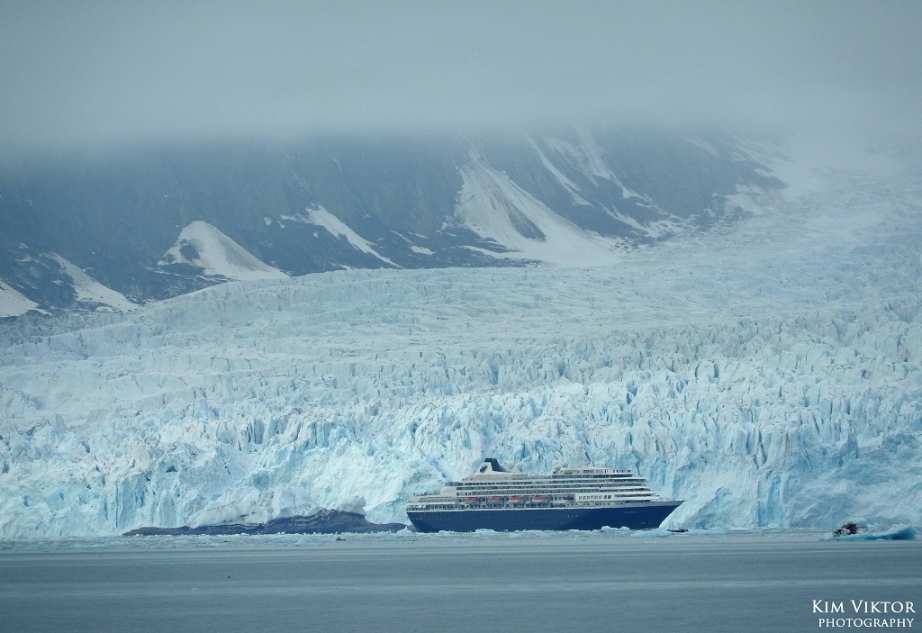 Prinsendam hade passerat oss på morgonen och la sig utanför Monacoglaciären. De beskådade endast glaciären från sjösidan och gjorde ingen landstigning.