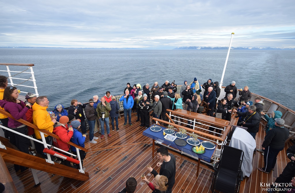 När vi passerade 80 breddgraden bjöds det på champagne (eller juice för mig).
