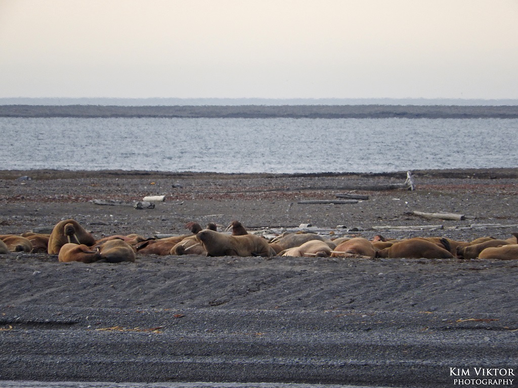 Ön Moffen är den säkraste platsen att få se valrossar på vid Svalbard. Denna kväll låg det runt 70 djur här, den ena tröttare än den andra. Det är landstigningsförbud på Moffen under somrarna och fartyget får inte kommer närmare än 300 meter.