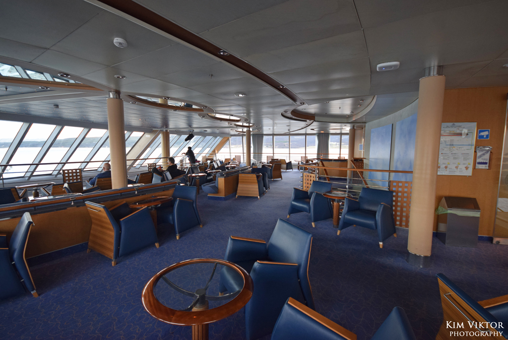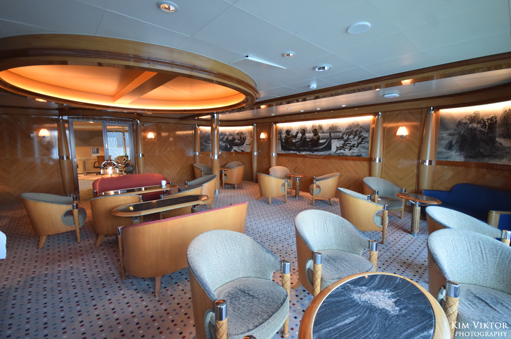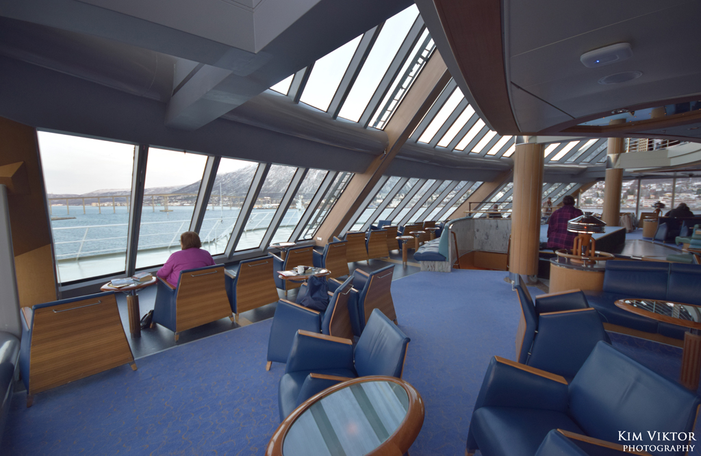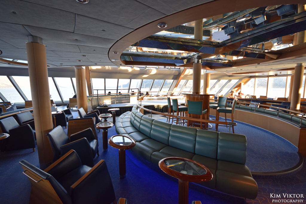 Det mysigaste stället ombord är observationsloungen i fören som sträcker sig över två däck.