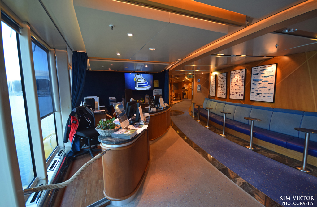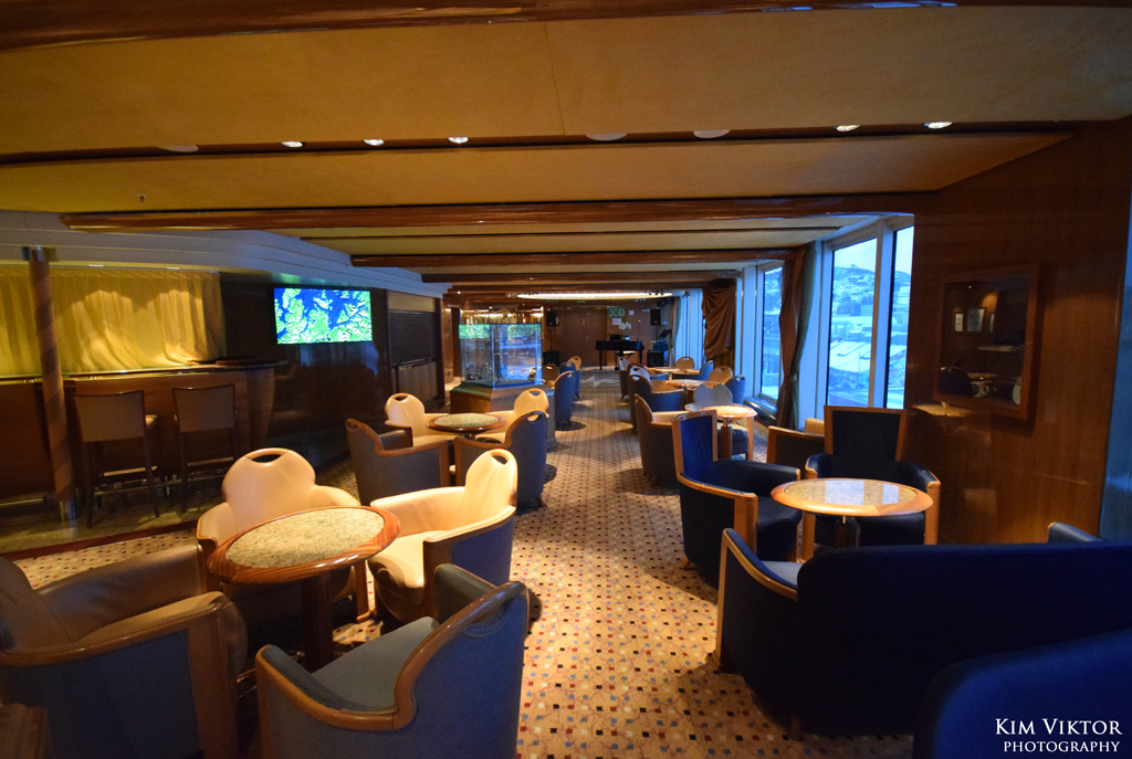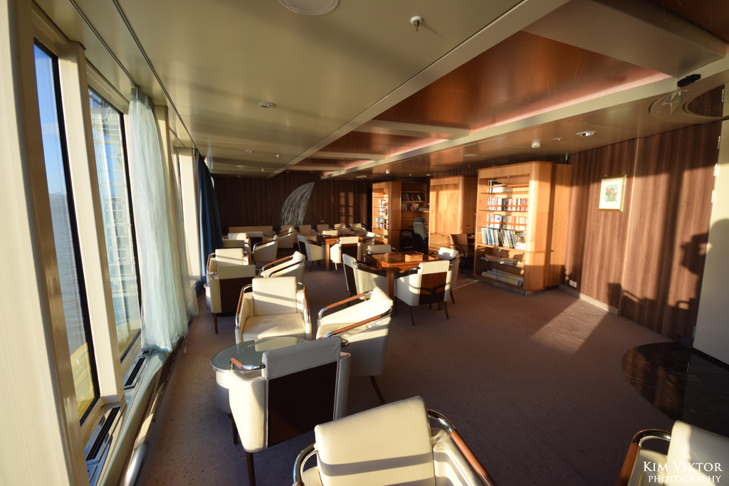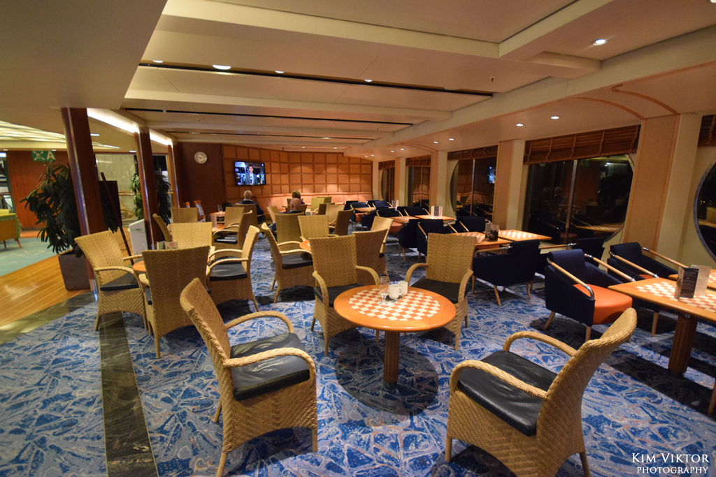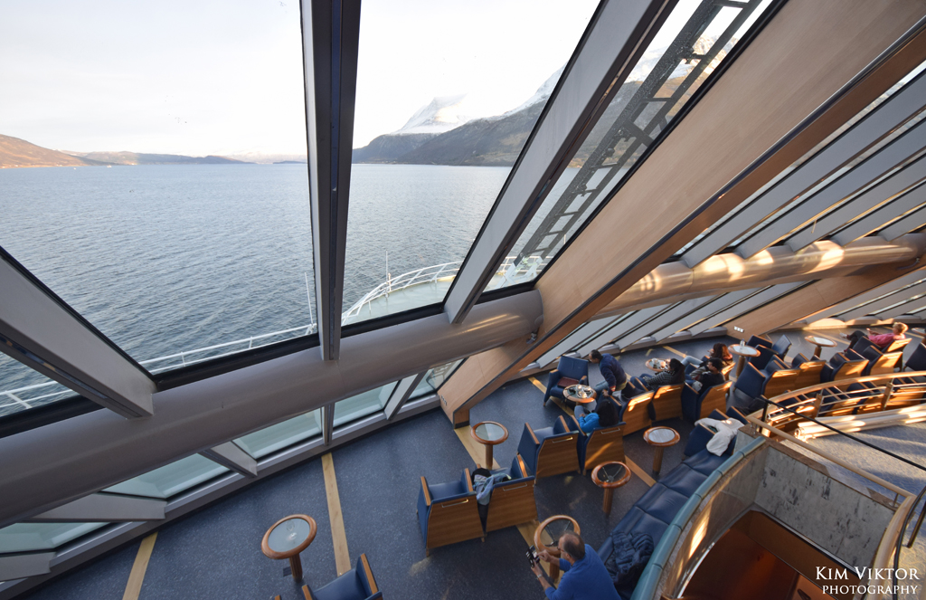 Det mysigaste stället ombord är observationsloungen i fören som sträcker sig över två däck.