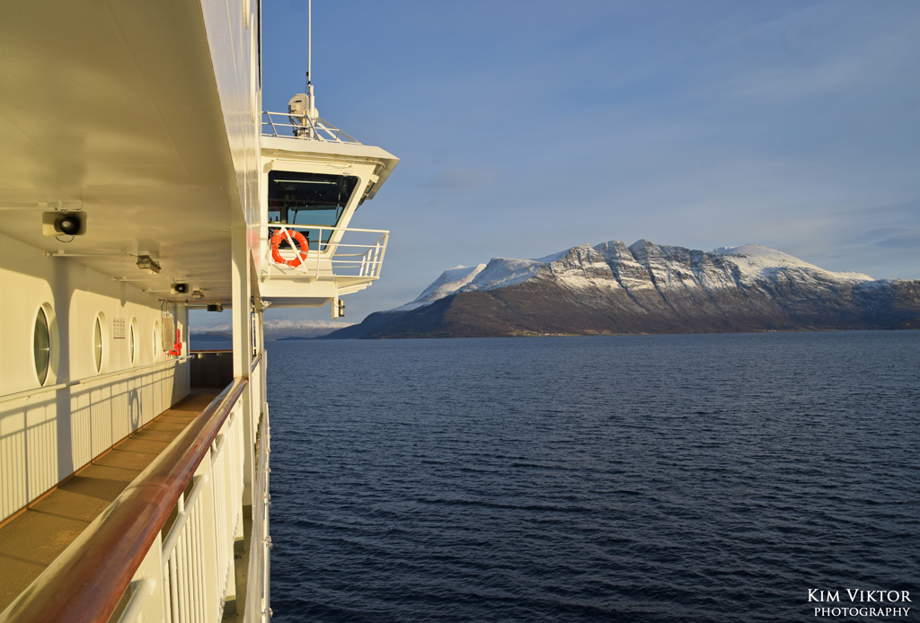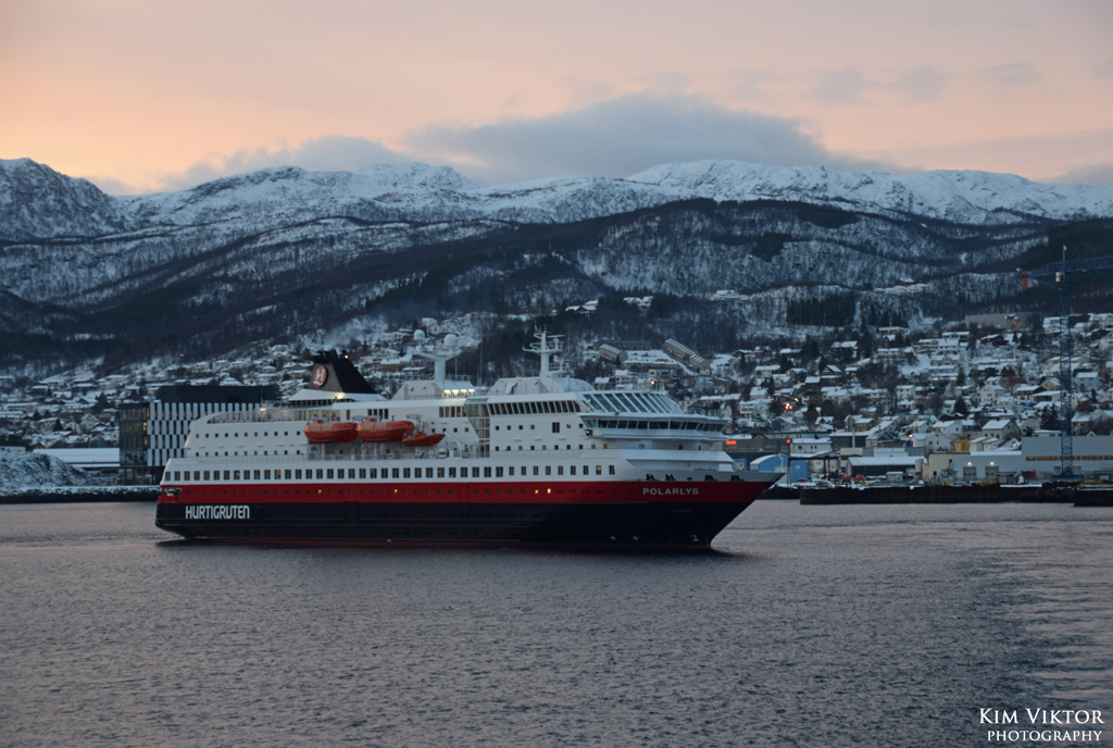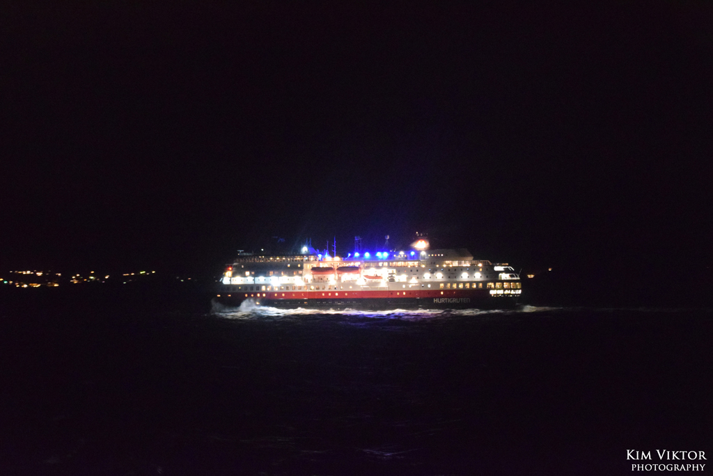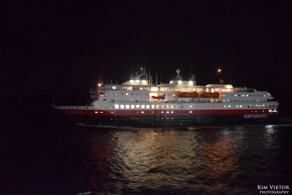 Möte med sydgående Polarlys vid vår avgång från Harstad.