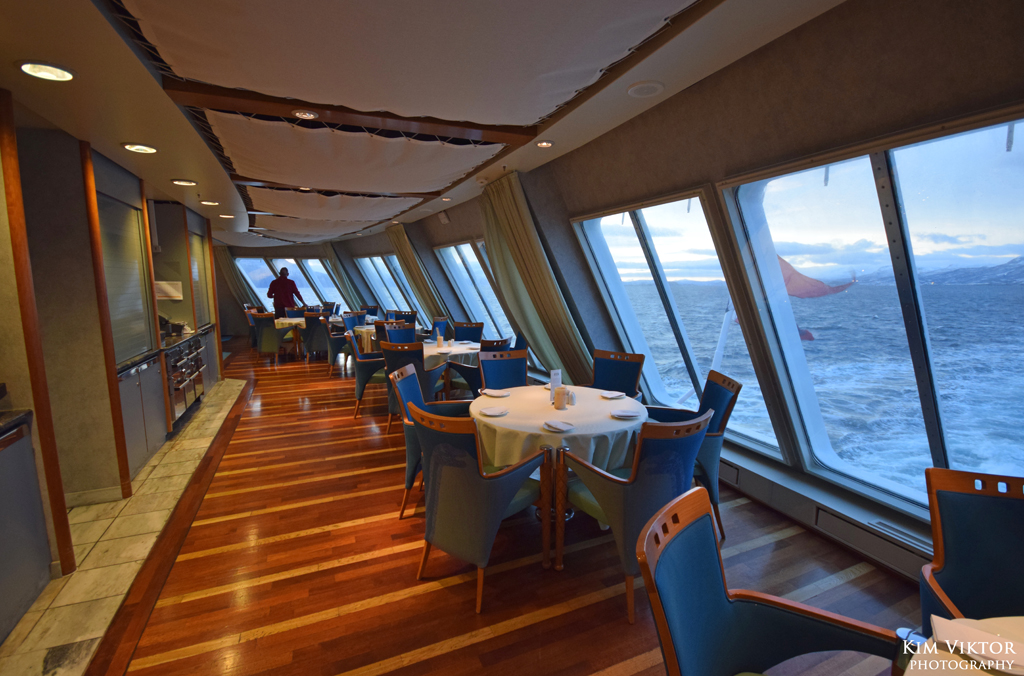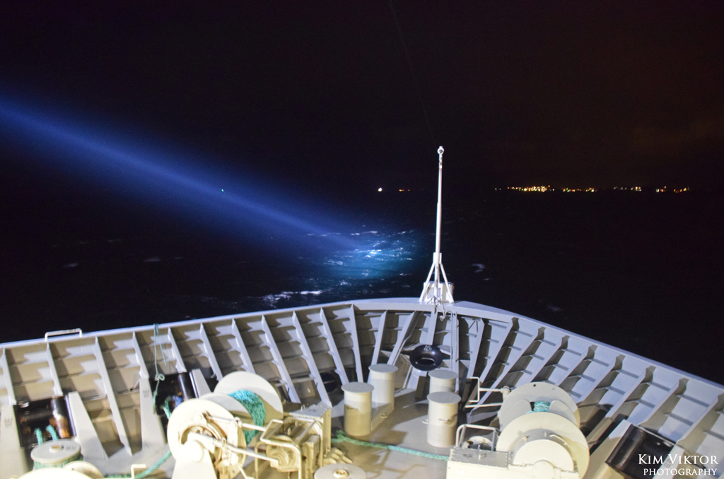 Vi kom dessvärre inte in till Svolvaer p.g.a. hård vind och fortsatte istället mot Stormarknes. Vädret gjorde att vi även hoppade över Trollfjorden, inte för vad jag vet vad vi skulle se där i mörkret. 😉 Vissa passagerare hade stigit av i hamnen innan (Stamsund) för en vikingautflykt och det var tänkt att dessa skulle komma tillbaka ombord i Svolvaer. Men de fick sig några timmar längre utflykt och fick komma ombord efter midnatt i Stormarknes.