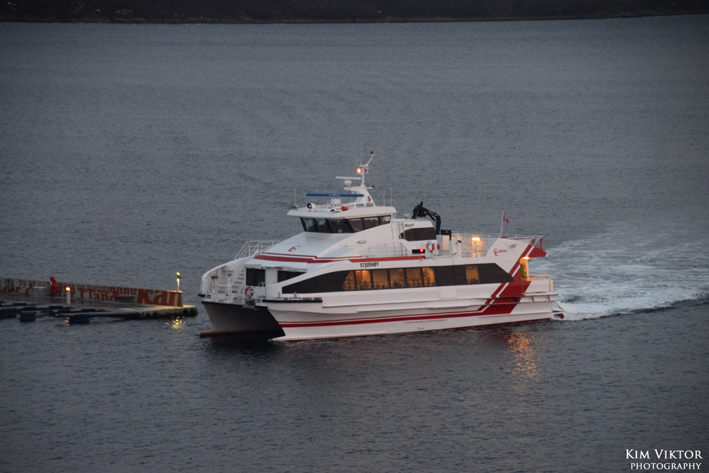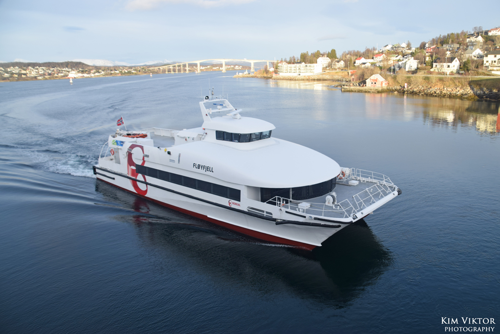 Snabbåten från Tromsö, som gör resan på 1 timme och 15 minuter, medan det tar nästan 3 timmar för Hurtigruten.