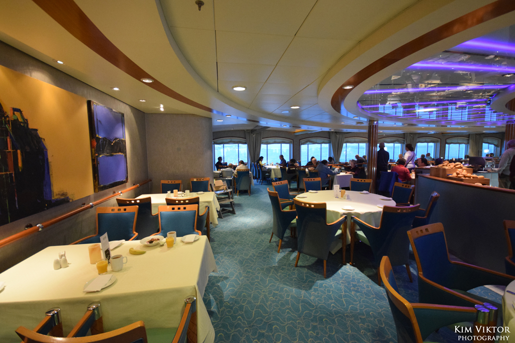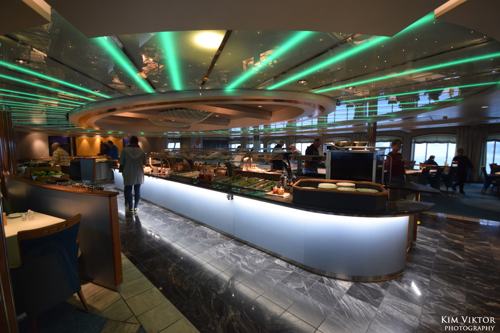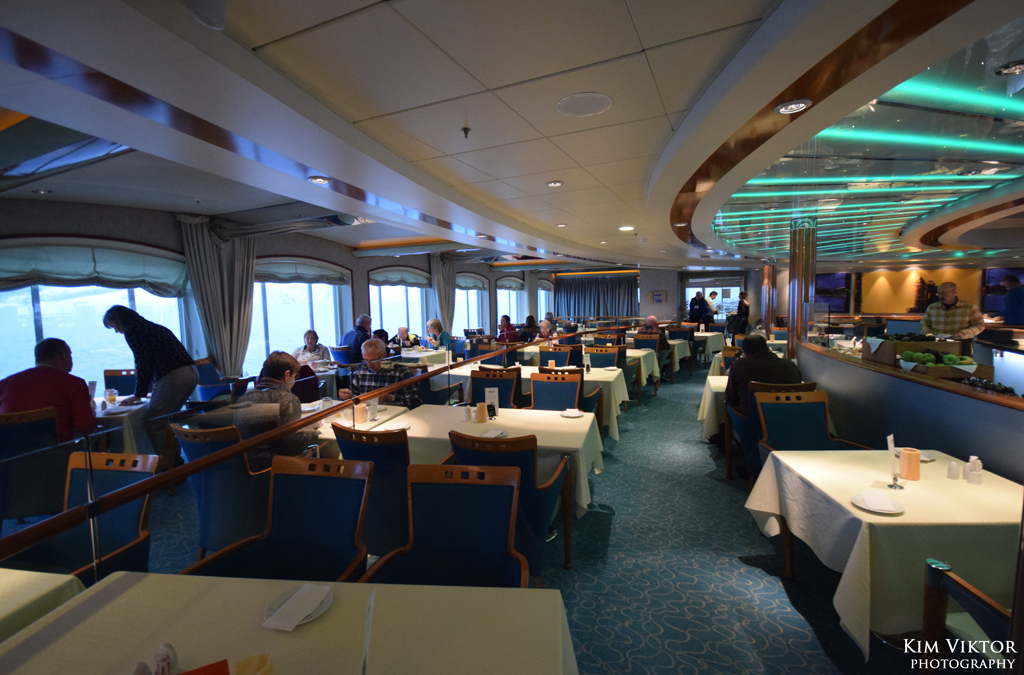 Restaurangen Saga Hall, där det serveras frukost, lunch och middag. Eftersom vi räknades som reguljärpassagerare ingick endast frukost i vår biljett (om man inte väl lägga till de andra måltiderna för hööööga priser).