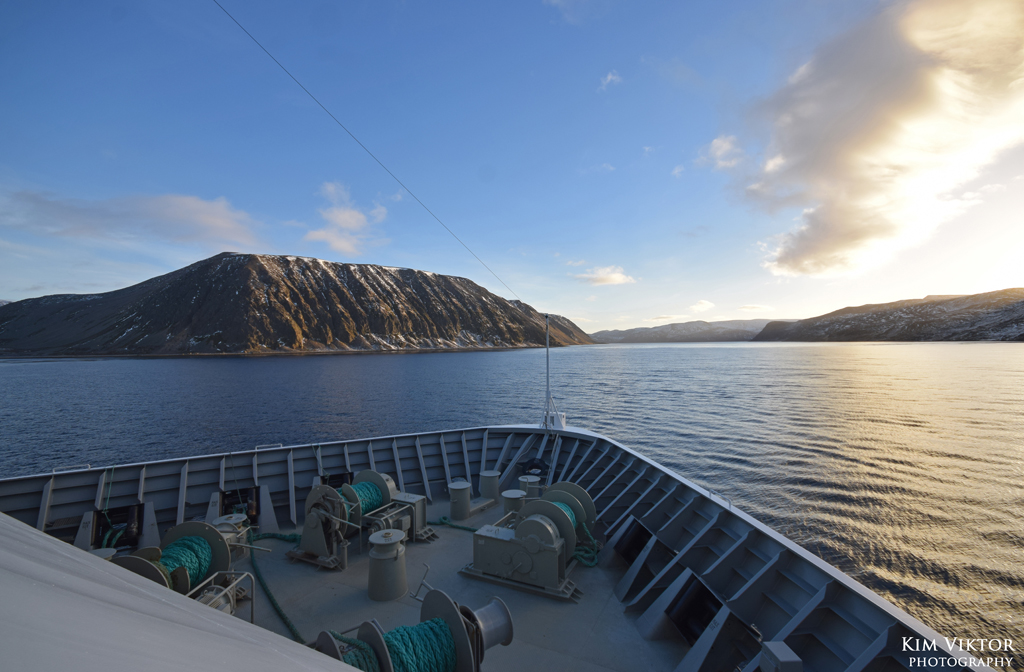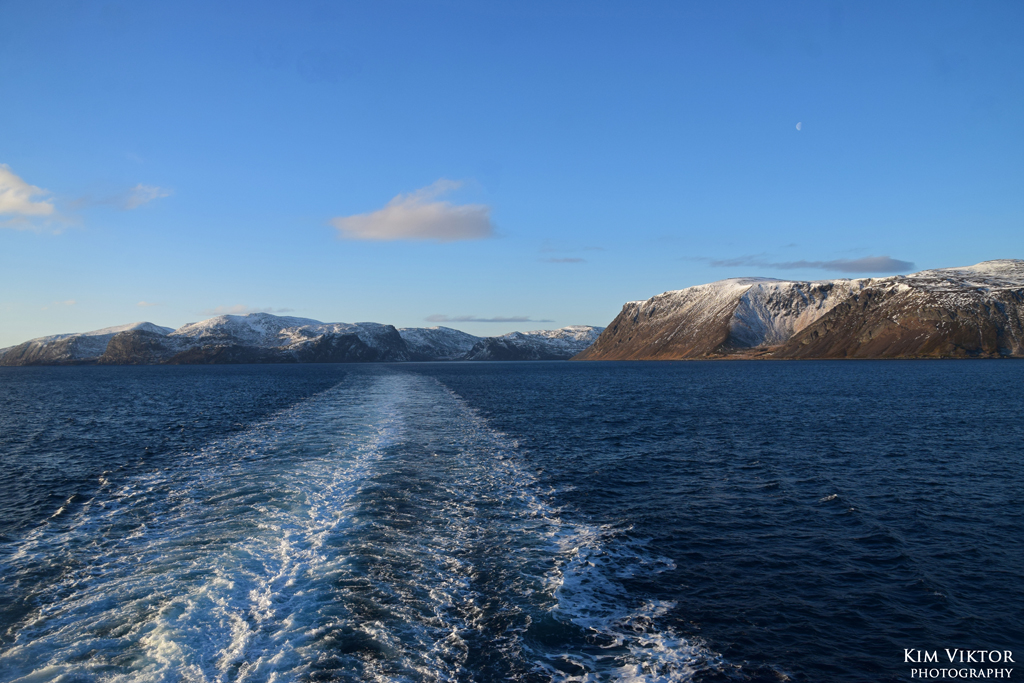 Så seglar vi in i Mageröysundet. Landskapet i Finnmarken är så vackert, älskar dessa kala bergsryggar.