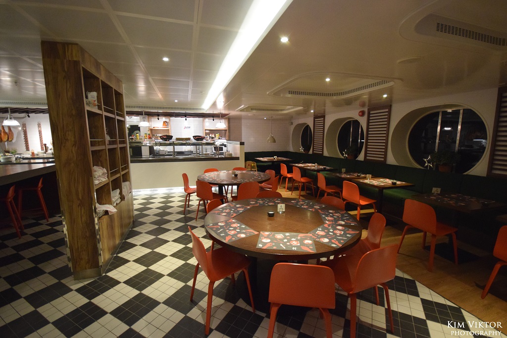 Snabbmatsrestaurangen Fast lane, vilken de gärna kunde ha givit en liknande inredning som den på Baltic Princess/Romantika.