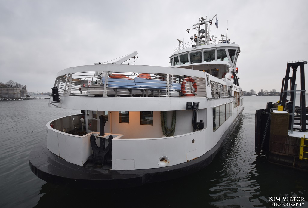 Suomenlinna II är huvudfärjan på rutten. Den andra färjan Suokki är just nu på varv, där hon ska få helt ny inredning och förlorar då tyvärr sin vackra träinredning.