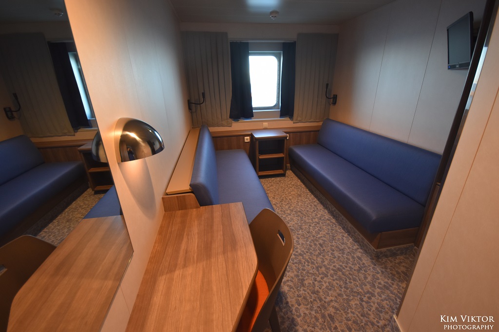 Denna resa hade vi en hel kupé. Hytterna har mycket trevligare inredning än de gamla färjorna, men de känns även lite trängre.