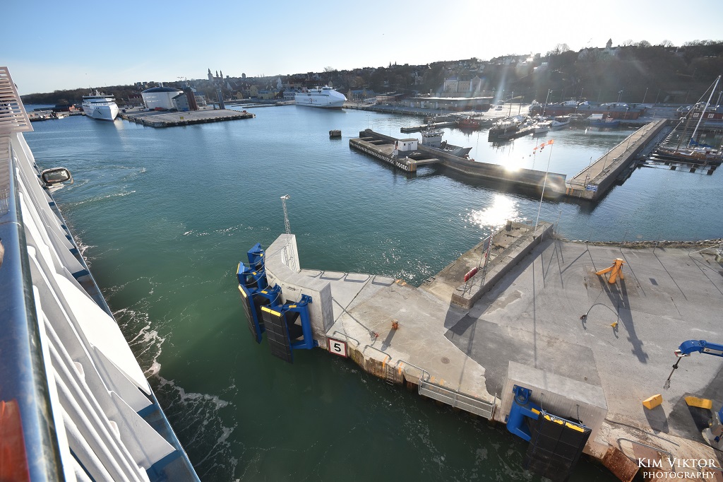 Tid för avgång och vi backade ut från kajläge 5. Där hon under natten hade legat ansluten till landström (nytt för Visby).