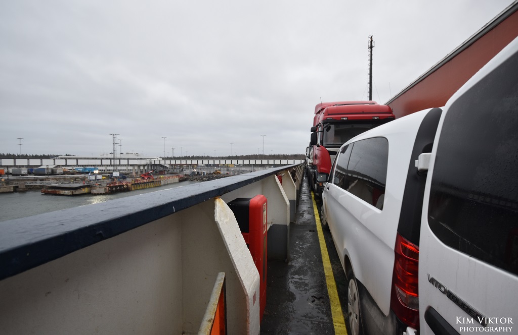 Efter att ha hämtat upp alla deltagare i Stockholm med en minibuss begav vi oss norrut mot Kapellskär. Väl framme fick vi checka in i ett litet hus intill grindarna. Man kunde ju tro att de hade kommit på ett smartare system med tanke på att hamnen är rätt så nyligen ombyggd?