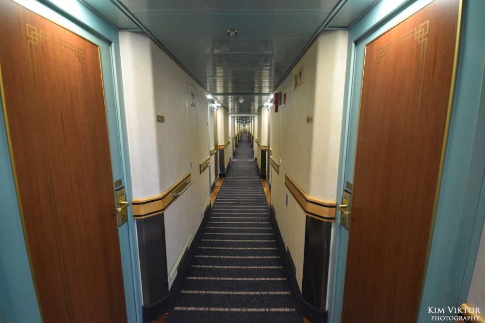 En vanlig hyttkorridor på däck 9.