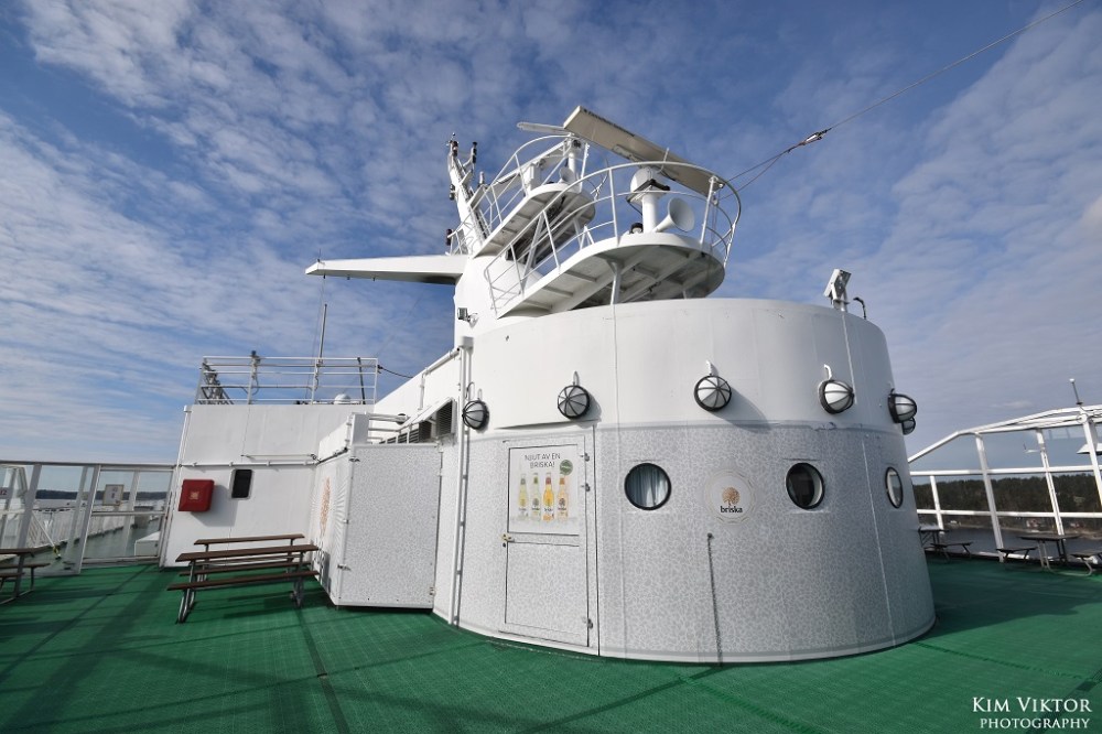 Det är inte många färjor som har ett dasshus ute på däck.
