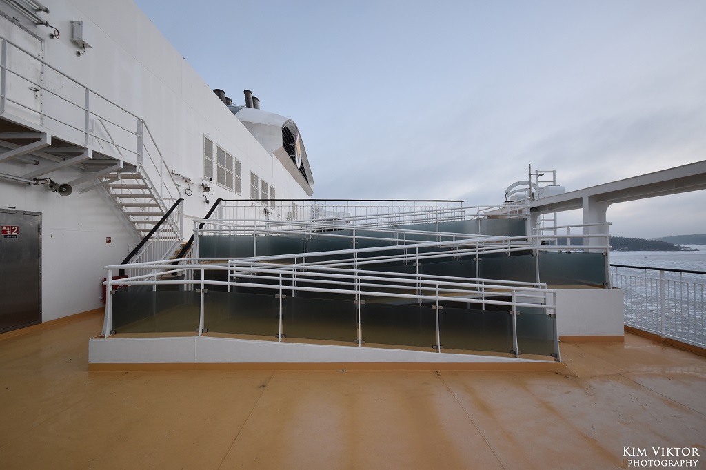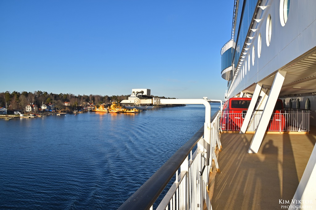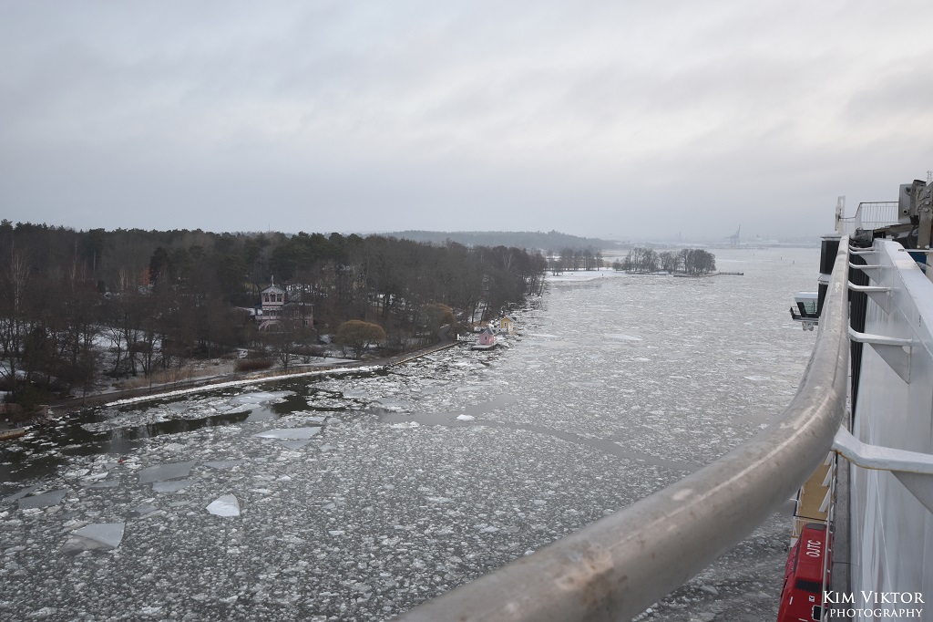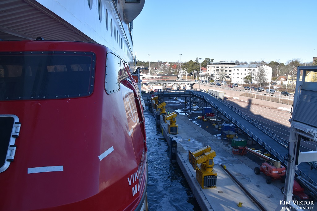 Den 1 mars var det äntligen dags för den första resan för Viking Glory mellan Stockholm och Åbo. Jag hade tillsammans med ett par kompisar bokat denna resa redan i september, så väntan var lång. På en premiärdag välkomnas man såklart av musik i terminalen och det var bra att de spelade, för väntan blev lång. Normalt får man kliva på Åbobåten vid 19.40, men Glory var sen in och hade vissa problem med landgången. Vi kunde gå på först vid 20.15, alltså en kvart efter ordinarie avgångstid. När vi väl kom in i hytten var den ostädad, men ett kort samtal ner till receptionen löste det hela snabbt. Vi börjar med en liten rundvandring ombord, här från däck 9, observera att bilderna är tagna vid olika tillfällen. På däck 9 finns i fören konferensanläggningen. Mellan konferensen och det stora caféet Torget finns receptionen på styrbordssida. Receptionen ligger verkligen avsides och är rätt så svår att hitta till om man inte har koll på var den ligger. Dessutom är gången förbi cafét mot receptionen väldigt trång och här köar folk också för att handla i caféet eller baren. Det hela resulterar i ett väldigt dåligt flöde. Men annars är det mycket trevlig inredning och helt rätt att satsa på ett utrymme som både kan användas som café och bar. Det påminner mig mycket om atrium på riktiga kryssningsfartyg. Längst fram i fören på däck 10 hittar vi The Buffet och på babordssida Mimmi’s. Mimmi’s erbjuder burgare och biffar. Jag åt både middag och frukost i buffén. Middagen höll verkligen bra kvalité. Det var även ett bra flöde i restaurangen och det blev i princip bara kö vid varmrätterna. Dryckesstationen låg lite undanskymt långt bort från maten. Överlag en mycket trevlig restaurang som får toppbetyg från mig. Midskepps på däck 10 ligger Market som erbjuder mat för alla smaker, allt från pizza och nordisk mat till bakverk och efterrätter. Man beställer maten i en av de två barerna och får sedan hämta ut maten i just den del man har beställt från. Stundtals gick det mycket långsamt att få beställa sin mat här, med långa köer. Vista Room är den perfekta kombinationen av en skybar och ett nattklubb. Detta blev mitt favoritområde ombord. På denna kryssning spelade både ett svenskt och finskt band. En kul detalj är glaset i golvet likt det som finns på Princess Cruises fartyg i Royal-klassen. I anslutning till Vista finns Algoth’s bar för de som vill ha en lugnare stund med bordsservering. Vista deck med sin stora utebar. Längst akterut på däcken under finns besättningshytter och soldäcket ovanpå dessa är avstängt för passagerare. Besättningshytterna har en intressant planering med hyttventiler riktade mot varandra. På däck 11 hittar man a la carterestaurangen Kobba. Spännande retorinredning här inne. Tyvärr hann jag inte testa maten här denna gång, men hörde att den skulle vara mycket bra. Här finns också en trappa upp till den privata delen Fyren som man kan hyra för mindre sällskap med en fantastisk utsikt. Spaavdelningen Archipelago, tyvärr blev det inget besök här så jag kan inte säga hur det såg ut på insidan. Viking Terrace, säkert mycket trevligt på sommaren med bar och scen. Personligen gillar jag soldäcket på Grace mer, här är det mest vindskydd i vägen för fotografering. I inloppet till Åbo var det gott om is. Vår ankomst till Åbo blev runt 40 minuter sen och inne i Åbo gjorde Galaxy sig redo för avgång, medan Amorella vilade upp sig efter sina tuffa 30 år på Åbo-linjen. Under hamnuppehållet lämnade många passagerare fartyget och jag fick chans att titta in i en av sviterna. Det finska utsläppskontrollfartyget Louhi låg utanför Åbo, fartyget ägs av det finska miljöinstitutet men opereras av flottan. I rökhörnan på däck syntes en teckning av ett konkurrerande rederis fartyg. I den åländska skärgården låg Gudingen vid Överö och lastade. Utanför Mariehamn mötte vi Europalink som i januari började gå mellan Kapellskär och Nådendal. I Mariehamn avgick Grace innan vi hade lagt till vid kaj 3. Lunchen blev en strömming i Market, vilken smakade utmärkt. Utanför Furusund mötte vi Östan som för tillfället går till bl.a. Norröra. Seglingen genom Furusundsleden gick genom spegelblankt vatten. Resan avslutades vid Stadsgården strax efter 19. Tack till Viking Line för en lyckad premiärresa. Jag tror att Viking Glory passar mycket bra på Åbo-linjen och kommer att stanna där länge. Grattis till ett välbyggt fartyg!