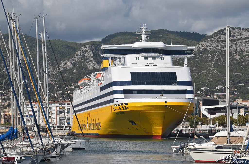 I Toulon låg två systrar. Mega Smeralda till höger (f.d. Svea, Silja Karneval, Color Festival) och till vänster Mega Andrea (f.d. Wellamo, Silja Festival).