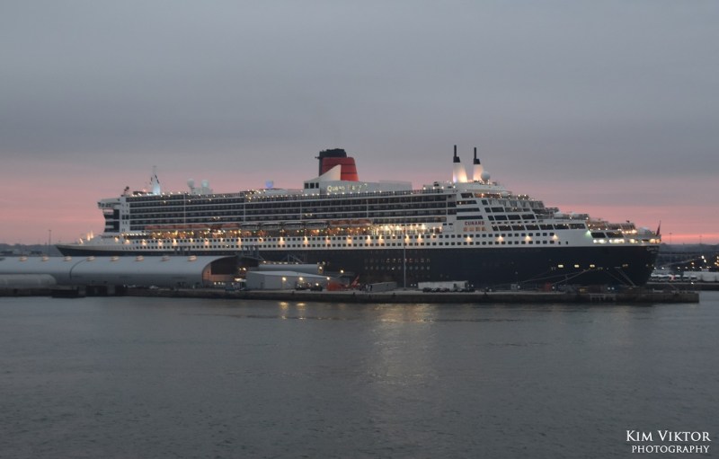 Queen Mary 2 låg oväntat inne i Southampton. Hon hade efter sin världskryssning fått ställa in nästa resa till New York p.g.a. maskinproblem. Därför har hon fått ligga vid kaj här under två veckor istället.