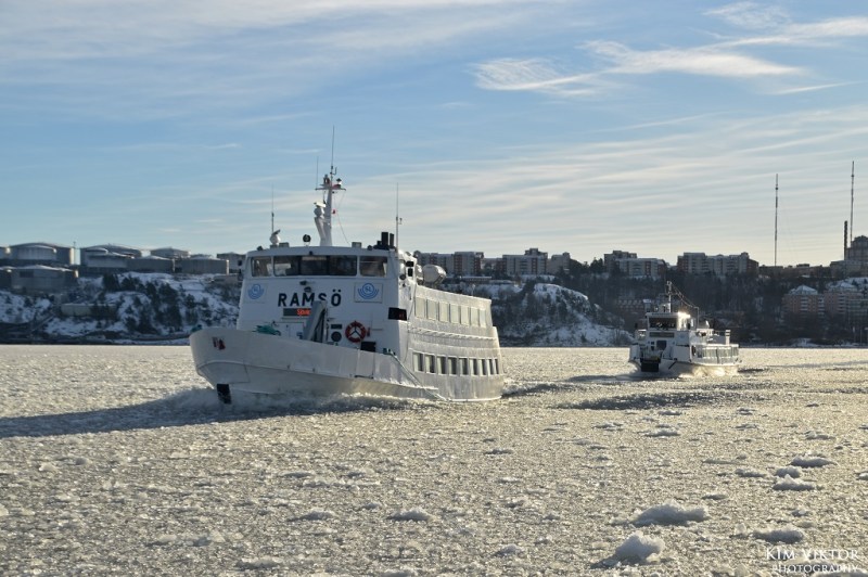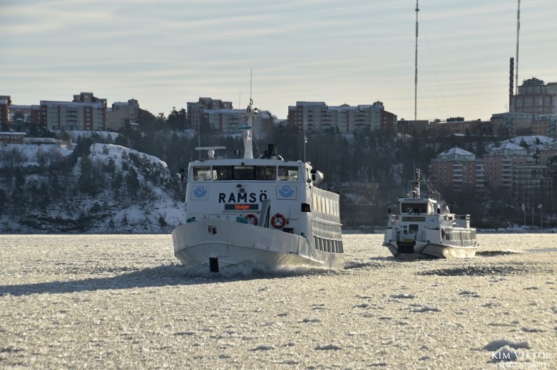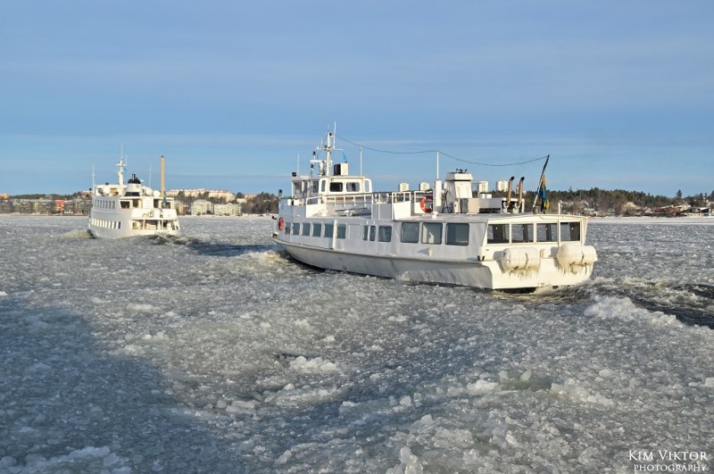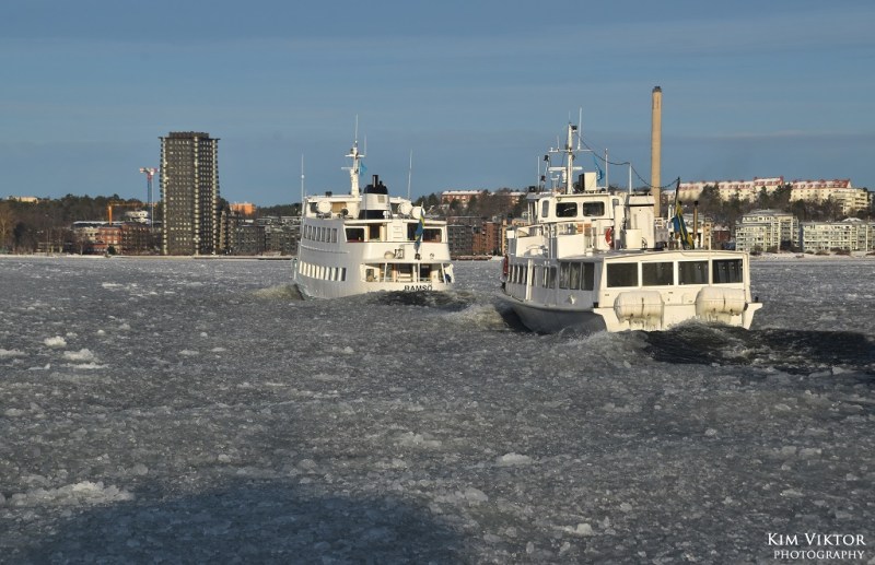 Isen har lagt sig inne i de mer centrala delarna av Stockholm också. Detta har lett till en del problem för Sjövägen (SL-linje 80) som kör normalt både med glasfiberbåtar (Sofia, Clara, Maria och Sjövägen) och aluminiumbåtar (Kungshatt och Nämdöfjärd). För att underlätta för dessa båtar har M/S Ramsö fått agera isbrytare, främst mellan Nacka Strand och Ropsten. Jag tog en tur med Hättan och Clara i onsdags och fick då bevittna det hela. Hättan går normalt inte på Sjövägen längre, men har fått hoppa in med tanke på isläget. En annan veteran är Kung Ring som sköter den nordliga delen av linjen till Storholmen och sköter detta galant trots all is. Jag vet även beundra två Gotlandsbåtar i Värtahamnen. dels Drotten som ligger upplagd under vintersäsongen och Birka Gotland som snart ska på varv för att förberedas inför hennes ”nya” trafik för Gotlandsbolaget och Viking Line.