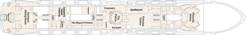 Princess Royal-klass är kända för sin ”Seawalk” uppe på pooldäck, med en glasgång över havet. På Sun Princess har de valt en annan variant där man tyvärr inte kommer ut över havet. Men det jag gillar mer Sun Princess är att man har mer kontakt med havet i de publika områdena än på många andra moderna kryssningsfartyg som är mer ”instängda”.