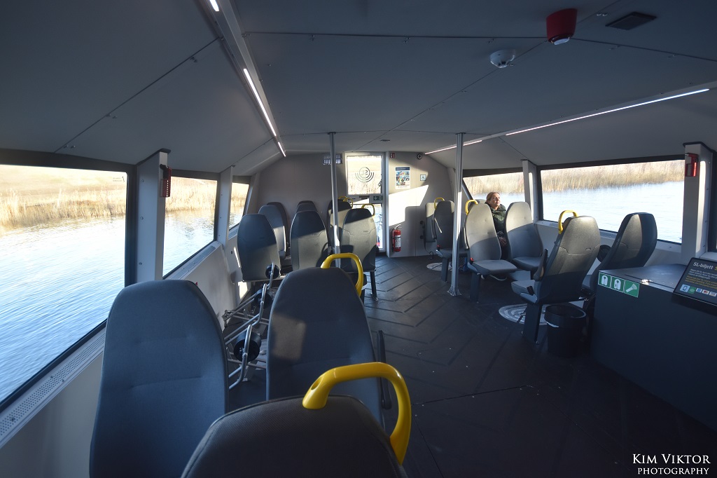 Bärplansbåten Nova har varit insatt mellan Klara Mälarstrand och Tappström på Ekerö i strax över två veckor (över ett år senare än först beräknat). Starten har dock inte gått helt som på räls, med en del inställda turer både p.g.a. tekniska problem och hårda vindar. Båten Nova ingår ett pilotprojekt fram till augusti 2025 mellan SL, tillverkaren Candela och Trafikverket. Målet är att klara av att köra sträckan på under 30 minuter. Idag när jag åkte tog det närmare 40 minuter, mest p.g.a. att man inte har fartdispens på sträckans Ekensberg-Klara Mälarstrand. På resten av sträckan kör hon i 25 knop. Ombord finns det plats för 25 personer samt plats cyklar, barnvagn och rullstol. Båten är 12 meter lång och tillverkade i kolfiber. Båten laddas på Norr Mälarstrand och en laddning räcker i 40 sjömil. Det var intressant att få testa på fartyget, kul att båten både är byggd på Lidingö och helt elektrisk. Jag kan absolut se en framtid för dessa på vissa sträckor, förhoppningsvis också lite större båtar med högre kapacitet. Själv vill jag helst kunna få ut på däck när jag åker båt och inte behöva sitta fastspänd med säkerhetsbälte under hela resan. För er som vill testa så kommer båten att trafikera linje 89 fram till mitten av december och sedan kommer hon tillbaka när isen har försvunnit i vår.