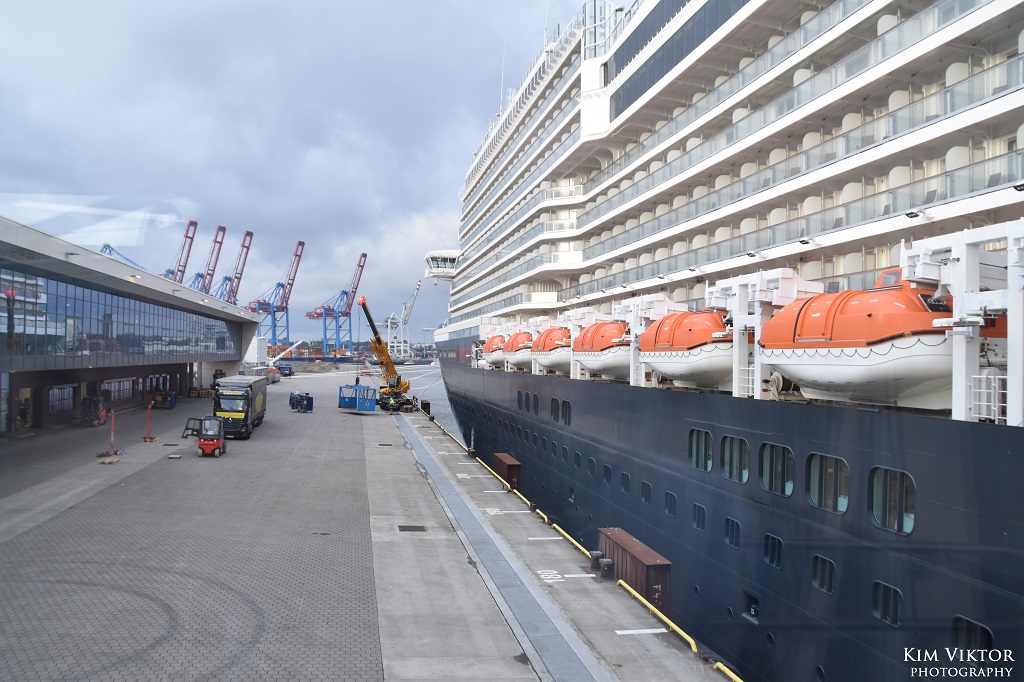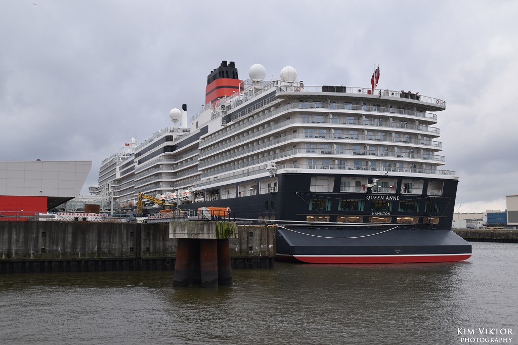 I Steinwerder (som troligtvis är Europas tråkigaste kryssningsterminal, mitt ute i ingenstans) låg Queen Anne redo för mig.
