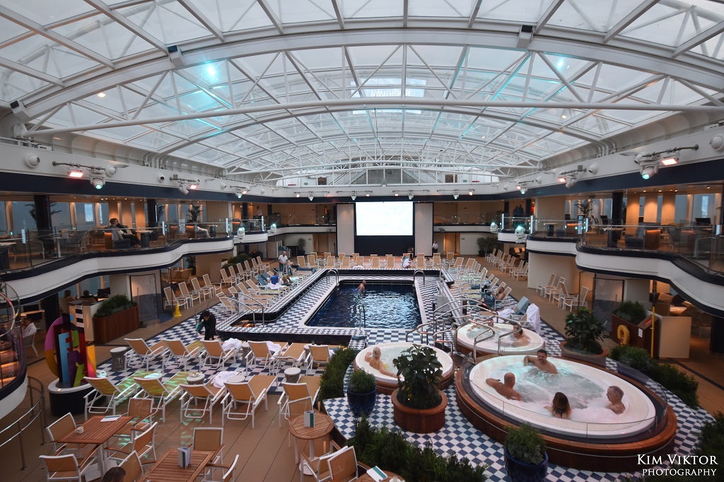 The Pavilion är inhomhuspoolen med öppningsbart tak. Personligen ett av mina favoritområden ombord. Under kvällarna visar de även film eller konserter på den stora skärmen.