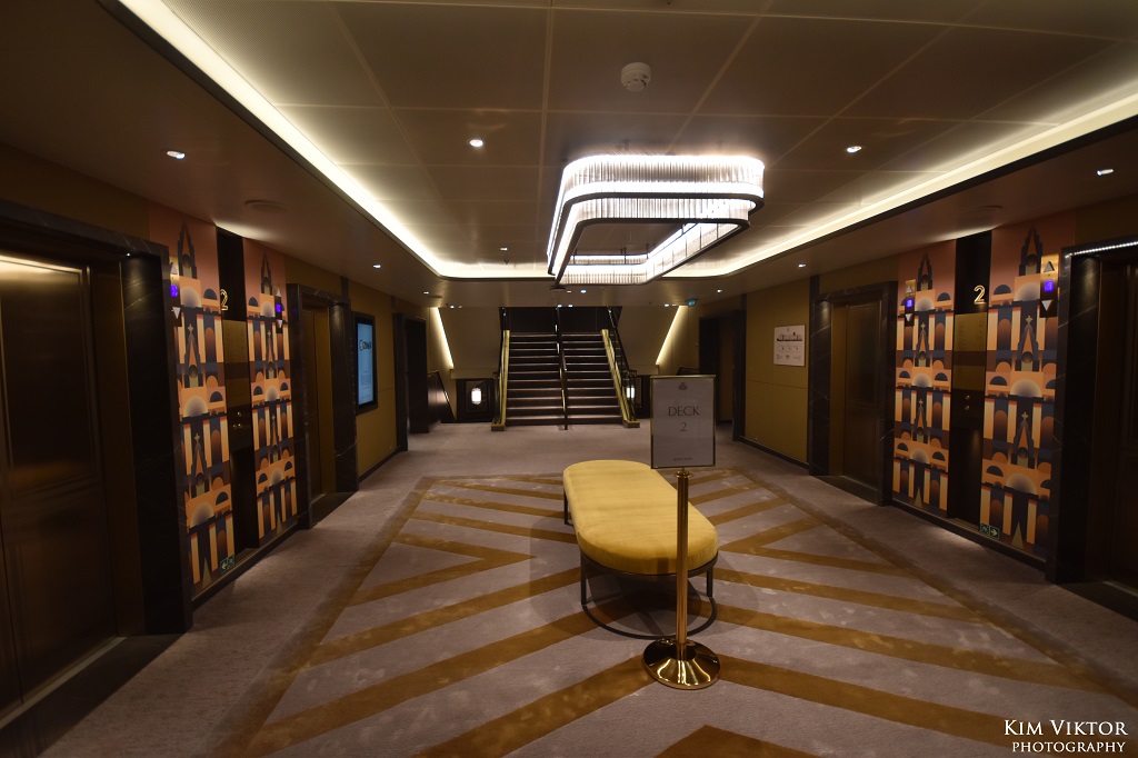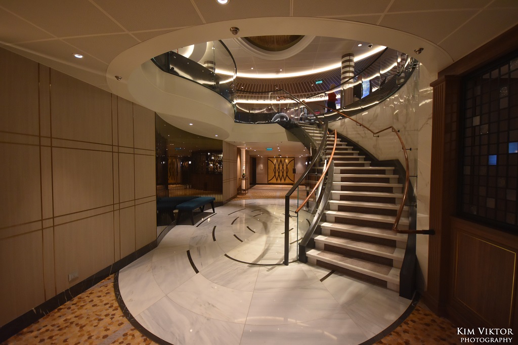 Atriumet är inte lika mäktigt som på de andra Cunardfartygen, men ändå modernt och läckert.