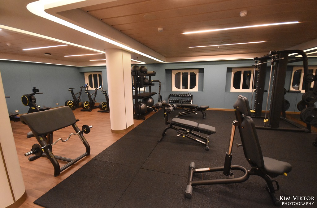 Även gymmet ligger längst ner på däck 1. Det är bland de minsta gymmen jag har sett på nyare kryssningsfartyg (det finns dock ett rum till som inte syns).