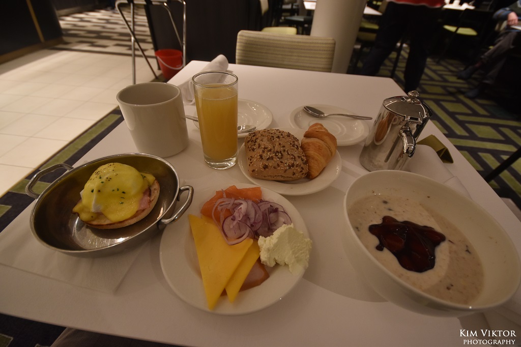 Frukosten i buffén var riktigt bra med egg benedict, gott om olika pålägg och framför allt många sorters bröd. Påläggen får man ta själv resten måste man stå i kö för och bli serverad. Lite irriterande att behöva stå i kö för att få en brödbit faktiskt.