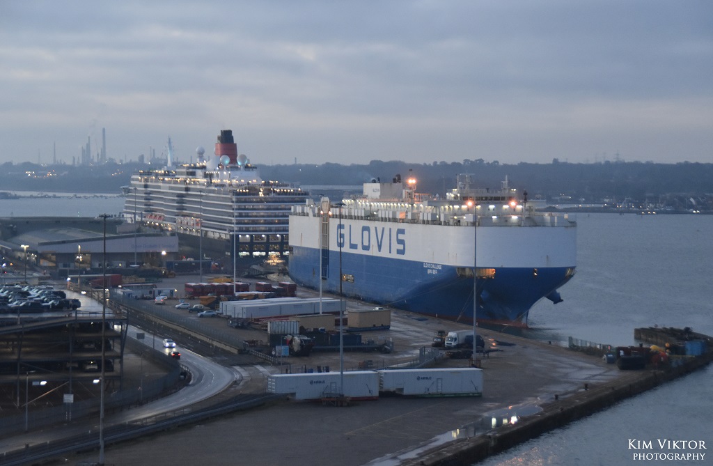 I Southampton låg ett annat Cunardfartyg inne, nämligen Queen Victoria. Hon skulle samma dag påbörja en resa runt Sydamerika på 85 nätter.