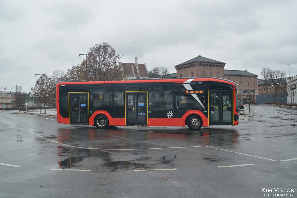 Då det regnade en del så valde vi att ta bussen ner till hamnen. De har en hel del elbussar från av MAN vars modell vi nu även har fått till Stockholm.