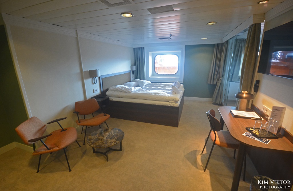 Klockan 12.45 fick vi tillgång till vår hytt. En Dommodore de luxe på däck 7 med begränsad utsikt mot livbåtarna. Alla hytter har fått en uppfräschning under vintern.