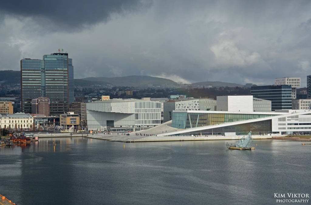 Sightseeingbåten Vision of the fjords, som en miniatyr av Operahuset.