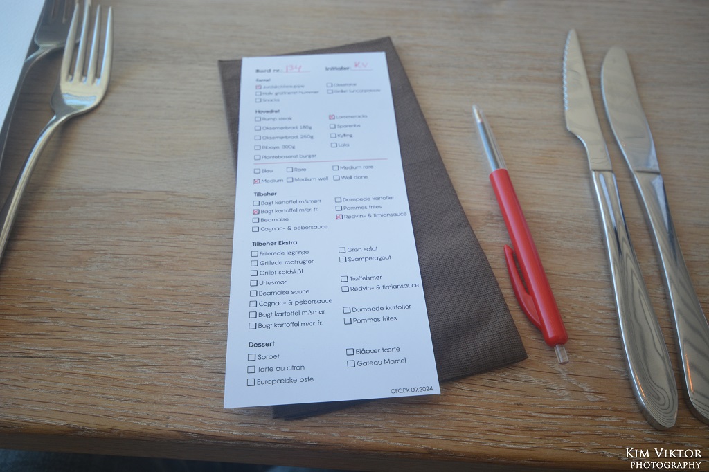 Middagen intogs i Explorer steak house. Istället för att beställa från servitörerna, fick man fylla i denna lapp och lämna in.