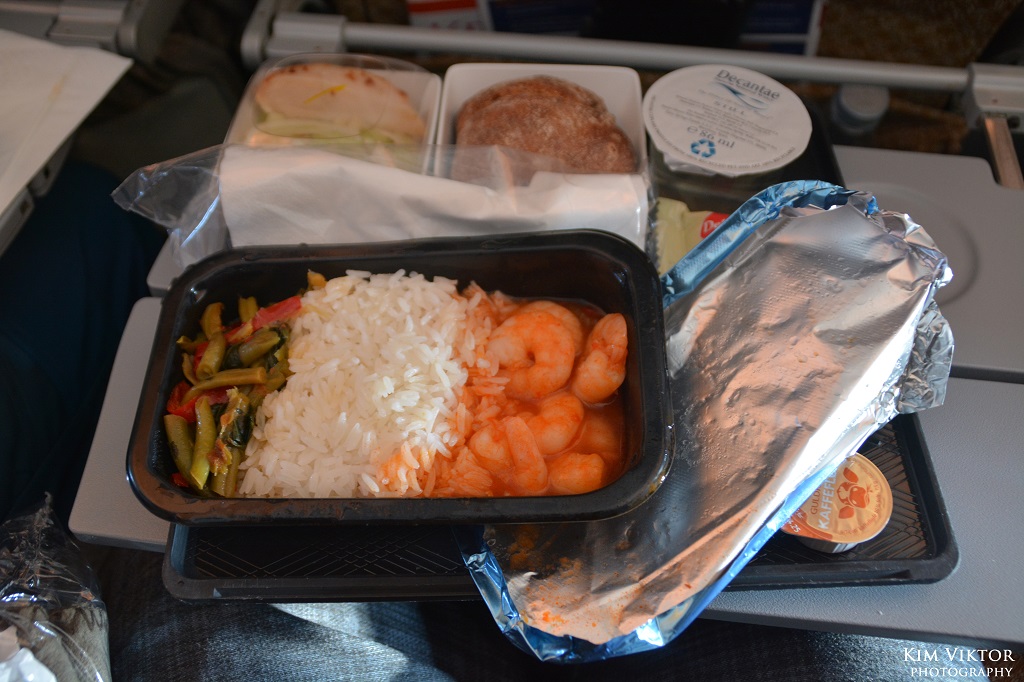 Maten på flygplanet var förvånansvärt med dessa chiliräkor. Sen är det alltid trevligt när man kan dricka obegränsat med vin.