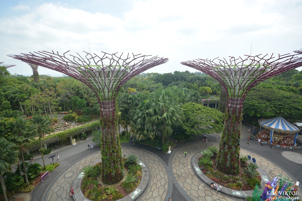En annan av Singapores stora attraktioner är ”Gardens by the bay”. Den stora futuristiska parken på 101 hektar innehåller två av världens största växthus en blomkupol och en regnskog. Men det mest kända är troligtvis de artificiella träden. Hela projektet kostade över 1 miljard dollar.