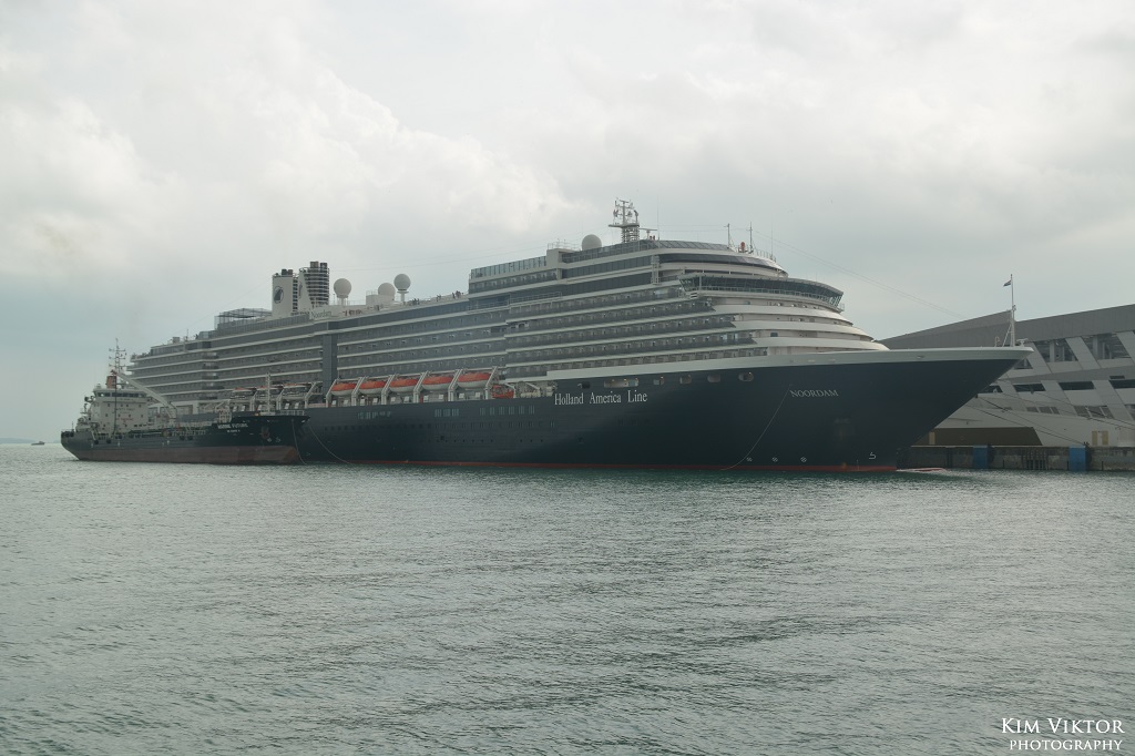 Inne vid kryssningsterminalen låg Holland Americas Noordam, som under vintern har gjort kryssningar i sydost Asien mellan Singapore och Hong Kong.