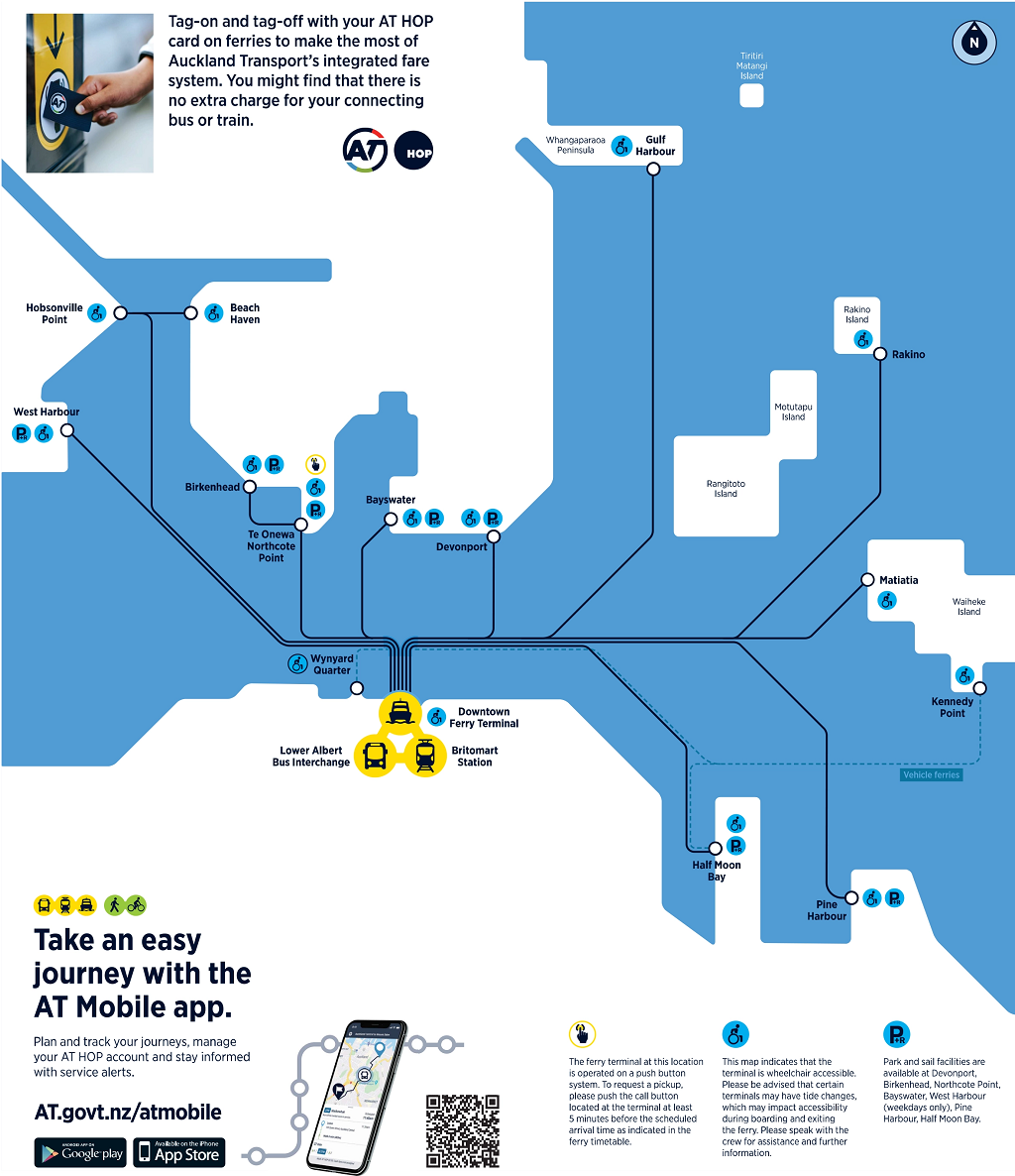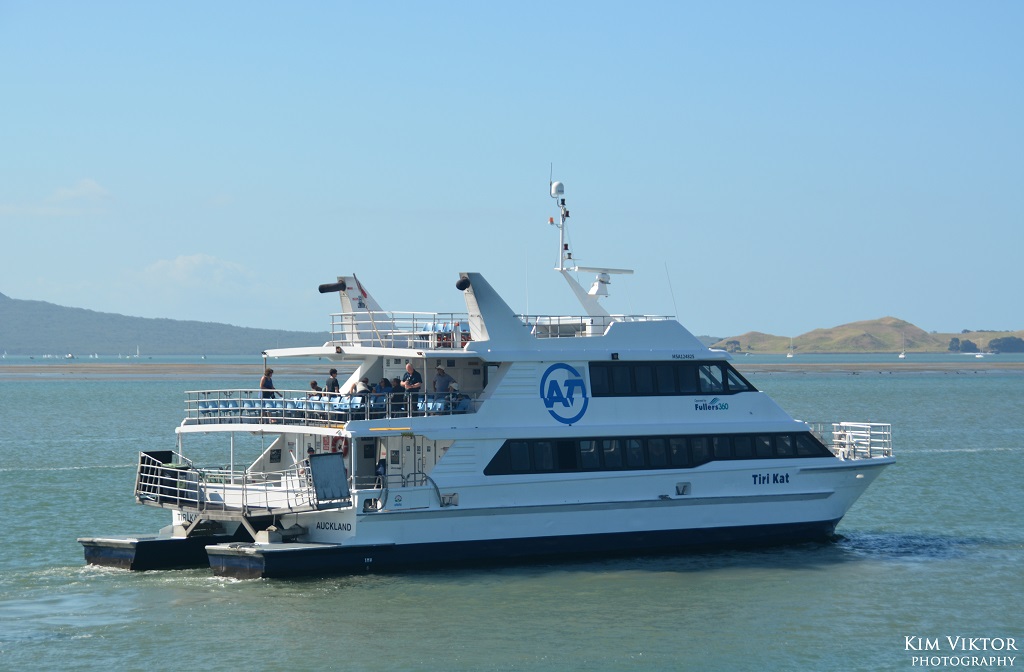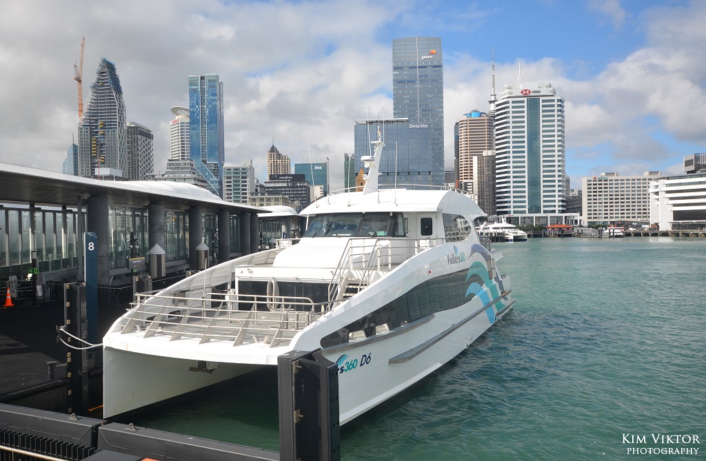 Kollektivtrafiken till sjöss i Auckland består utav hela 10 olika linjer som alla trafikeras av snabbgående katamaraner. Utöver detta finns det även en del privata linjer till öarna utanför staden. Copyright: AT