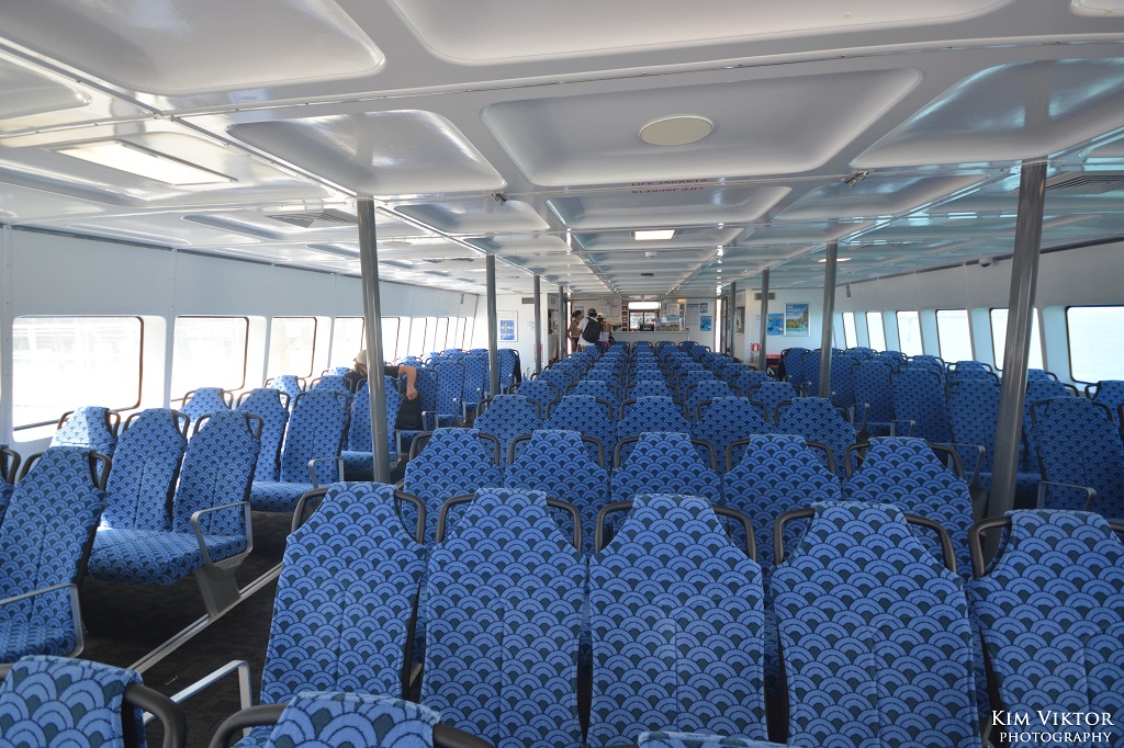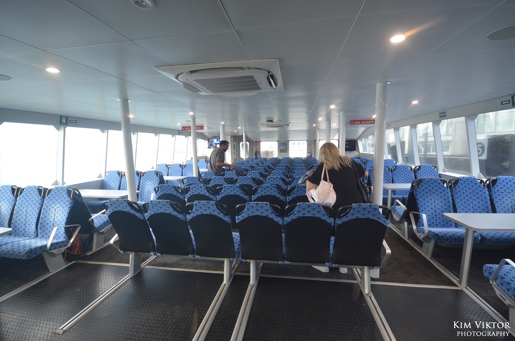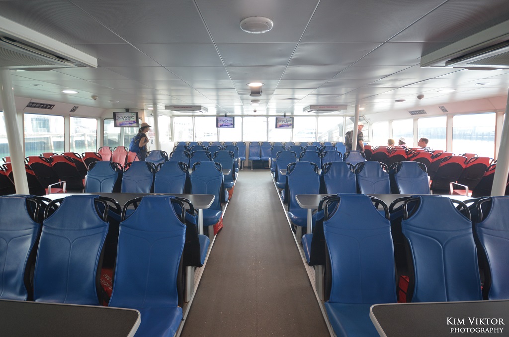 Resan tog strax under 30 minuter. Innan man gick ombord på färjan var man tvungen att spola av sina skor för att inte föra med någon smitta eller invasiva arter som kan påverka det känsliga ekosystemet här ute.