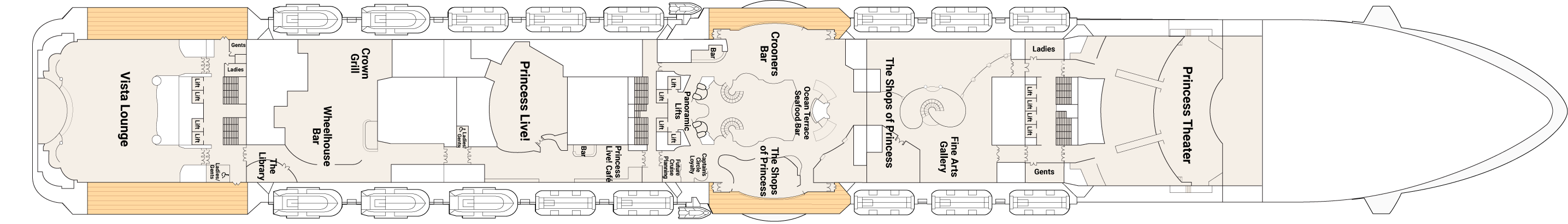 Nu är det tid för en liten rundvandring i de publika områden på däck 7. Copyright Princess Cruises.