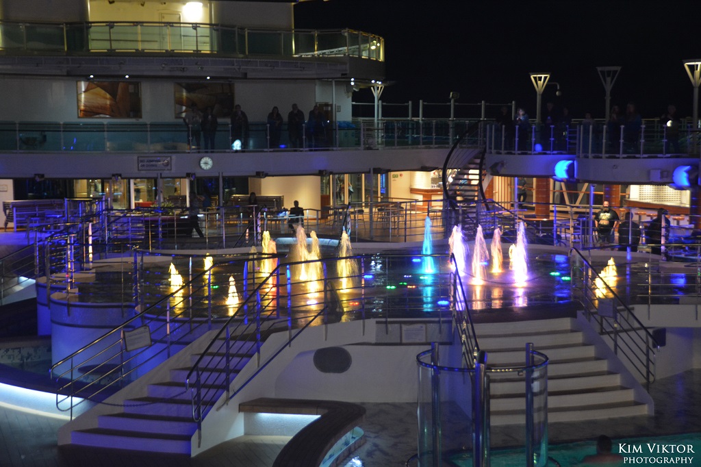 Varje kväll har de också en ”fontänshow” på 5 minuter vid poolen.