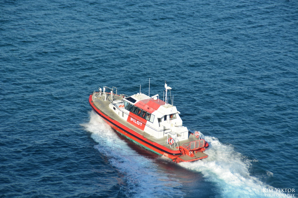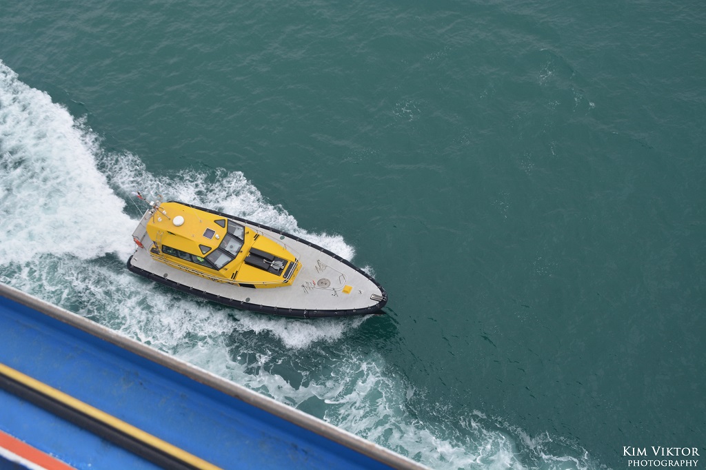 Vi gör oss redo för vår avgång kockan 17 och lotsen är på väg ombord.