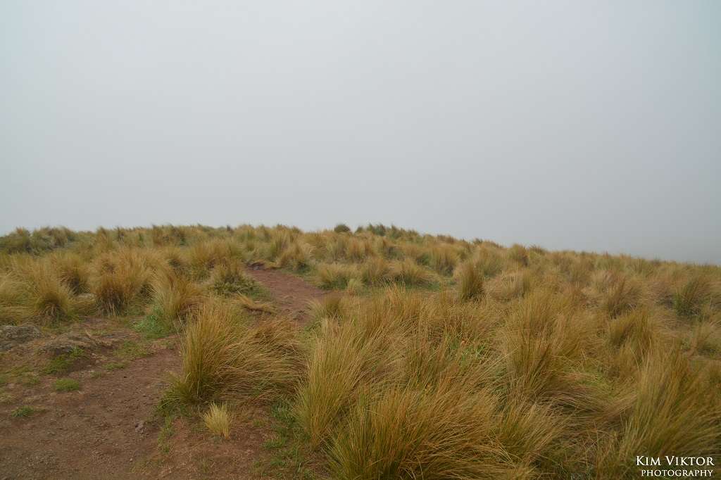 Väl uppe möttes vi att en tjock dimma. Vi var inte helt förvånande, men såg att det snart skulle börja lätta och tänkte då att vi chansar på att åka upp.