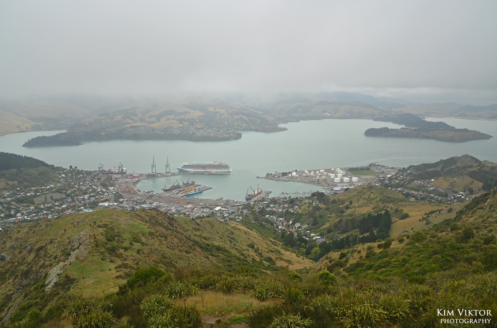 Som sagt klarnade det upp och vi kunde se ner till Lyttleton och vårt fartyg.