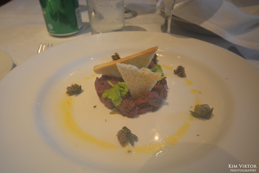 Denna middag blev det tatar till förrätt och kalvlever till huvudrätt, så gott! Dock märker jag att jag har åkt lite för mycket med Princess de senaste åren för jag känner igen menyn från de andra fartygen, men helt ärligt spelar det ingen roll när det smakar så här bra.
