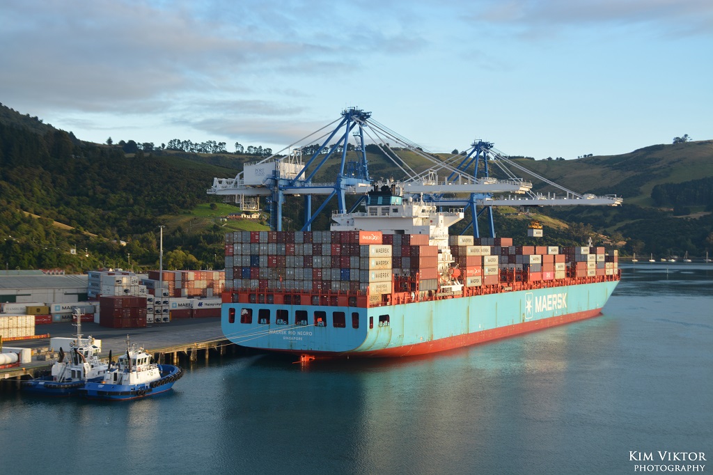 Inne i Port Chalmers låg Maersk Rio Negro. Årligen hanteras 200 000 TEU containrar. Den största exporten är dock timmer, årligen exporteras 1,15 miljoner ton.