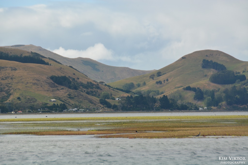 Vår resa ut till Otago tog en halvtimme längs den långa havsviken som sträcker sig hela vägen till Dunedin.