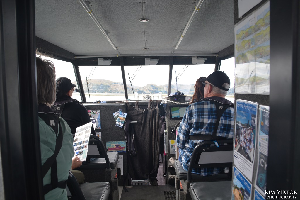 Alla passagerare var ute på däck och njöt av det fina vädret och de vackra vyerna. Vi hade en parkvakt ombord som guidade oss genom högtalarna.