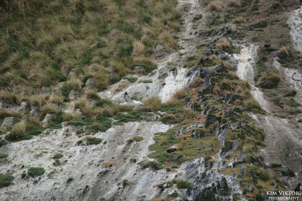 Här ute häckar över 100 stycken nordliga kungsalbatrosser som kan ha ett vingspann på upp till 3 meter. Vi hade tur att få se flera individer komma flygande som inte tillhör vanligheterna.