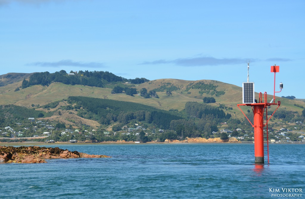 På väg tillbaka till Port Chalmers är den stora farleden tydligt markerad för att undvika de många sandbankarna.
