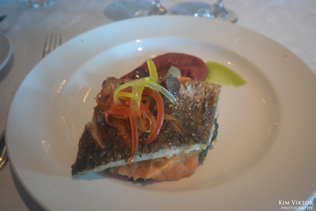 Denna kväll blev det fisk i form av ruby snapper med rödbetspuré och sötpotatismos som smakade helt gudomligt.